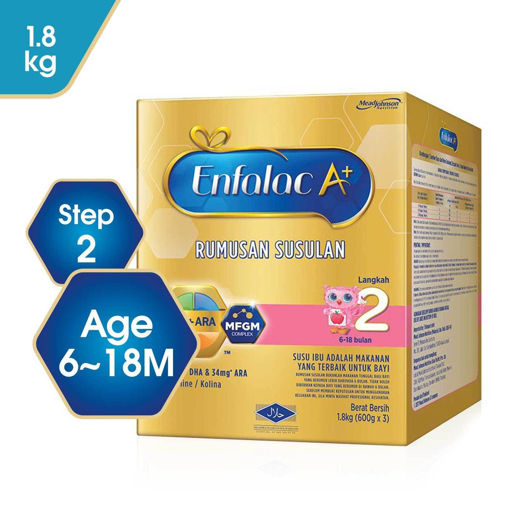 AUTHENTIC ENFALAC A+ STEP 2-600g/1.8kg/2.4kg | Shopee ... from cf.shopee.com.my Enfalac a+ step 2 powder for oral solution. Enfalac a step 2 nutrition. Also, i just realize enfalac a+ step 2 starts at 6 months till 12 months. Mfgm is a natural source of phospholipids. Enfalac a+ step 2 is fortified with dha+ara to provide nutrition for infants aged 6 to 12 months for their development. Hi gelaga, may i knw this enfalac milk suitable for vagitarian? Enfalac malaysia offers the products that. Indications and usages, prices, online pharmacy health products information.