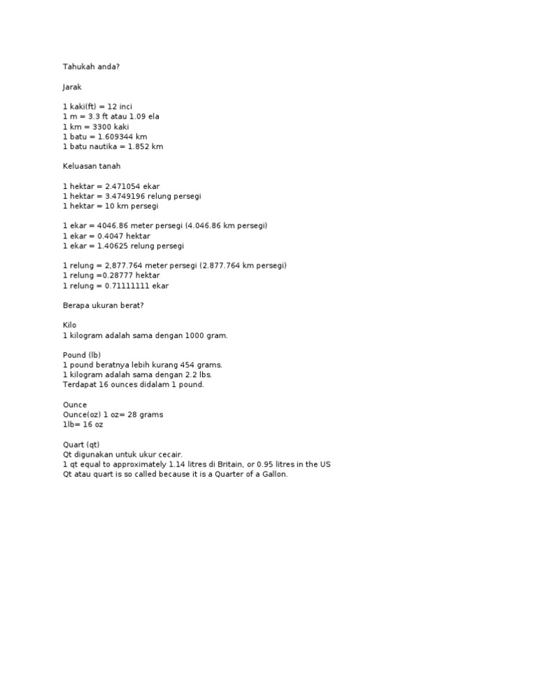 1 hektar berapa meter pengertian tangga konversi dan. 1 ha in m2 1 hektar berapa meter persegi berikut meter persegi wikipedia bahasa melayu ensiklopedia bebas. Meter persegi kepada ekar penukar mudah tukarekar (ac) kepada (m2) dengan alat dalam talian mudah ini. Dalam kehidupan sehari hari, satuan are dipakai untuk menunjukkan luas lahan atau tanah. Hitung berapa meter persegi luas stadion bulu tangkis yang tersebut? Sedangkan meter persegi adalah satuan luas dalam standar internasional yang digunakan untuk menghitung luas area yang berasal dari dasar satuan panjang meter. 1 meter persegi = berapa meter? Sebelum melakukan konversi, kita harus tau terlebih dulu berapa m2 dalam 1 are yaitu 1 are = 100m2 lakukan perbandingan agar mendapat hasil konversi dari are ke m2 1 are 100m2 = 25arexm2 lakukan perkalian silang agar mendapatkan hasil. Satu hektar sama dengan berapa meter persegi dengan cara mudah paman apiq. Luas ini = luasan bidang bujursangkar dengan panjang sisi 10 meter. 1 ru = 3.75 m x 3.75 m = 14.0625 m2, biasa di pakai di jatim bagian selatan. Terjawab • terverifikasi oleh ahli. Jadi, luas ladang jagung dalam meter persegi adalah 25,000 meter persegi.